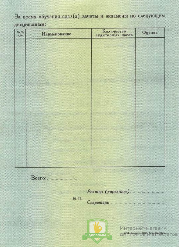 Купить диплом о профессиональной переподготовке 1996 - 2012 год