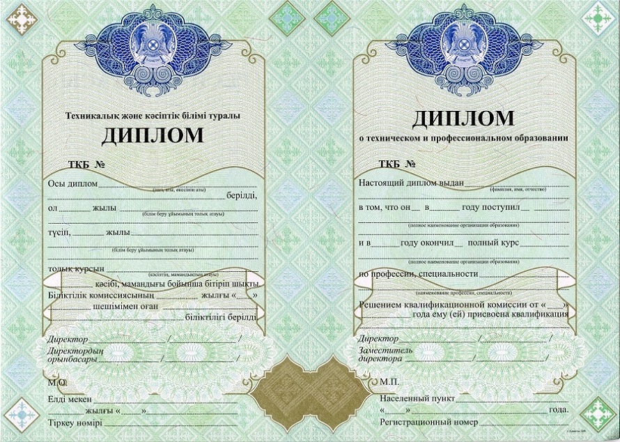 Образцы дипломов техникума / ПТУ Казахстана: